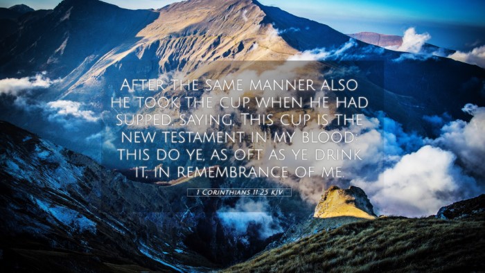 The themes of sacrifice, covenant, and remembrance are prevalent throughout the scriptures. 1 Corinthians 11:25 invites believers into a deeper relationship with Jesus through the act of communion and encourages the faithful to remember His sacrifice regularly. Understanding these themes highlights the interconnectedness of biblical texts and the relational dialogue within the scripture.