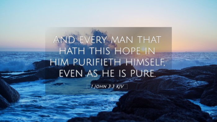 Barnes focuses on the conditional aspect of this verse, noting that the hope believers carry leads them to purify themselves. He emphasizes that this purification is not merely external but rather an internal transformation that mirrors Christ’s essence. Barnes underlines the connection between hope and ethical living as a manifestation of true faith.