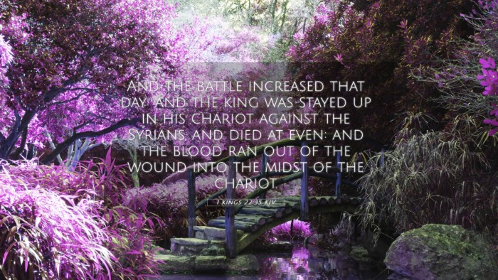 Bible Verse: 1 Kings 22:35 - "And the battle increased that day: and the king was stayed up in his chariot against the Syrians, and died at even: and the blood ran out of the wound into the midst of the chariot."