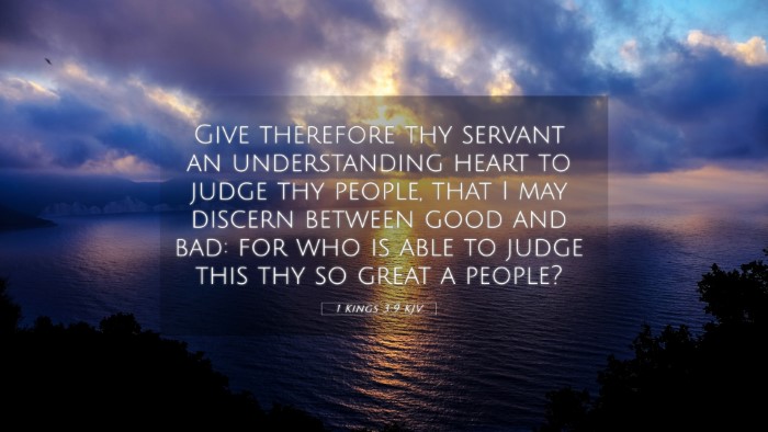 Below, you will find carefully selected verses that echo the themes and teachings related to 1 Kings 3:9 KJV. Click on any image to explore detailed analyses of related Bible verses and uncover deeper theological insights.