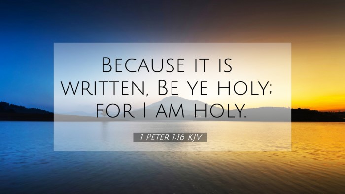 The call to holiness in 1 Peter 1:16 is a theme that resonates throughout the Scriptures. It illustrates the connection between God's nature and the ethical conduct expected from His followers. Understanding this verse in light of these inter-Biblical dialogues enhances our comprehension of the broader biblical narrative regarding holiness and sanctification.