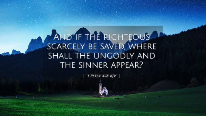 1 Peter 4:18 serves as a profound reminder of the seriousness of faithfulness in the Christian walk. It invites believers to reflect on their lives and assures them of the righteous judgment awaiting both the faithful and the unrighteous. Through cross-referencing with related Bible verses, individuals can attain a clearer understanding of scripture's unified message regarding judgment and salvation.