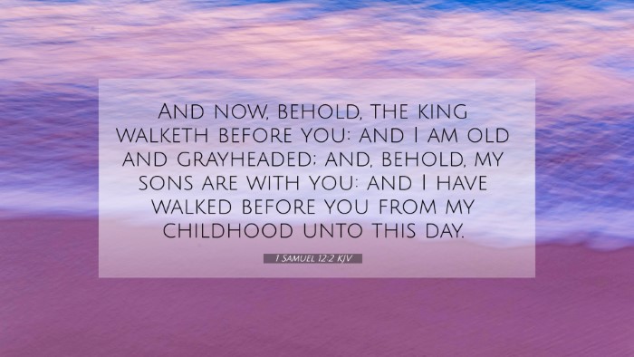 Verse: "And now, behold, the king walketh before you: and I am old and grayheaded; and behold, my sons are with you: and I have walked before you from my childhood unto this day."