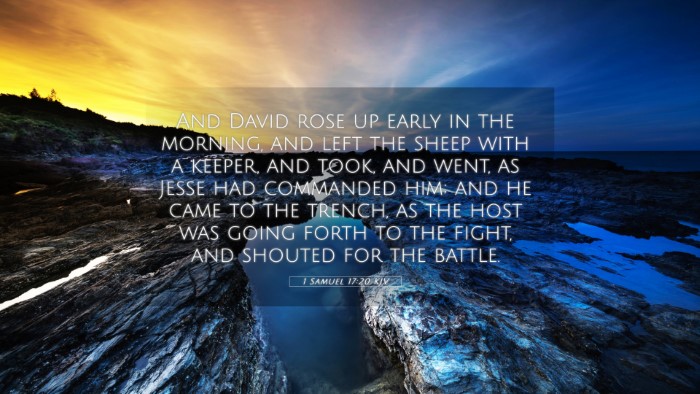 1 Samuel 17:20 serves not only as a historical narrative but also as a source of inspiration for personal application in faith. The insights drawn from various commentaries elucidate significant principles related to obedience, preparation, and courage, laying a foundation for deeper exploration of biblical texts.