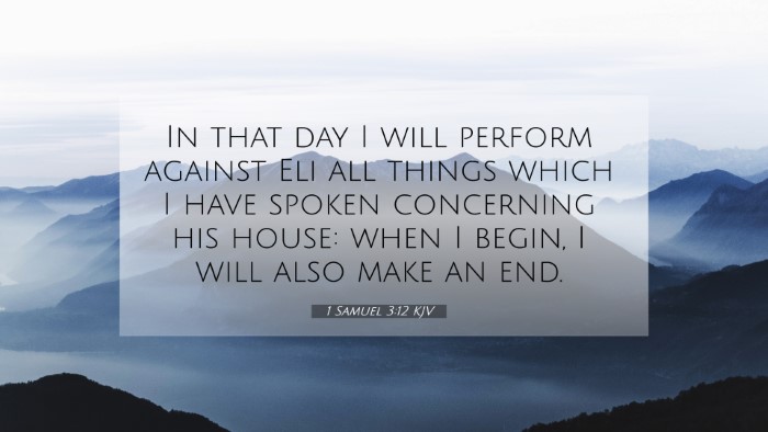 1 Samuel 3:12 states: "In that day I will perform against Eli all that I have spoken concerning his house; from beginning to end I will fulfill my word." This verse speaks to the affirmation of God’s judgment and the prophetic declaration made against the house of Eli, indicating God's seriousness about the sins of Eli's family.