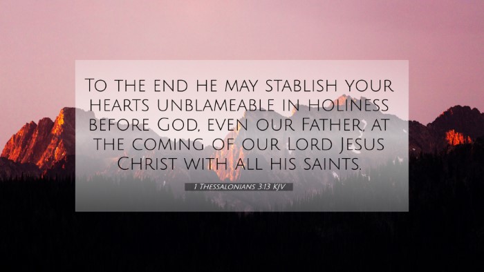This verse states: "To the end he may establish your hearts unblameable in holiness before God, even our Father, at the coming of our Lord Jesus Christ with all his saints." It addresses the importance of spiritual maturity and readiness as believers anticipate the return of Christ.
