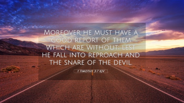 Verse: "Moreover, he must have a good report of them which are without; lest he fall into reproach and the snare of the devil." (1 Timothy 3:7, KJV)