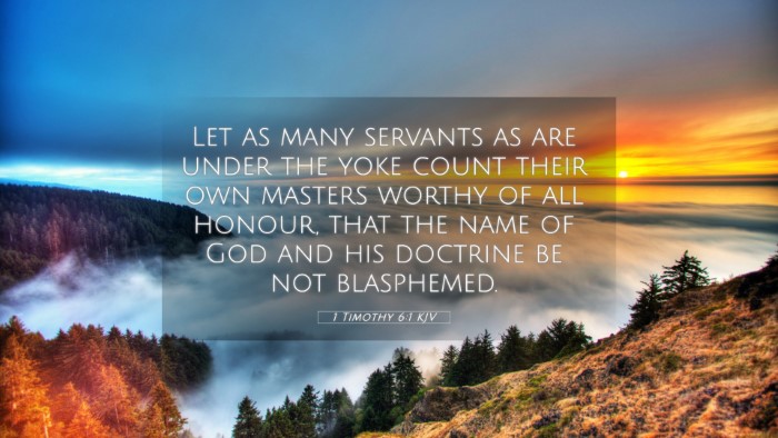 Below, you will find carefully selected verses that echo the themes and teachings related to 1 Timothy 6:1 KJV. Click on any image to explore detailed analyses of related Bible verses and uncover deeper theological insights.