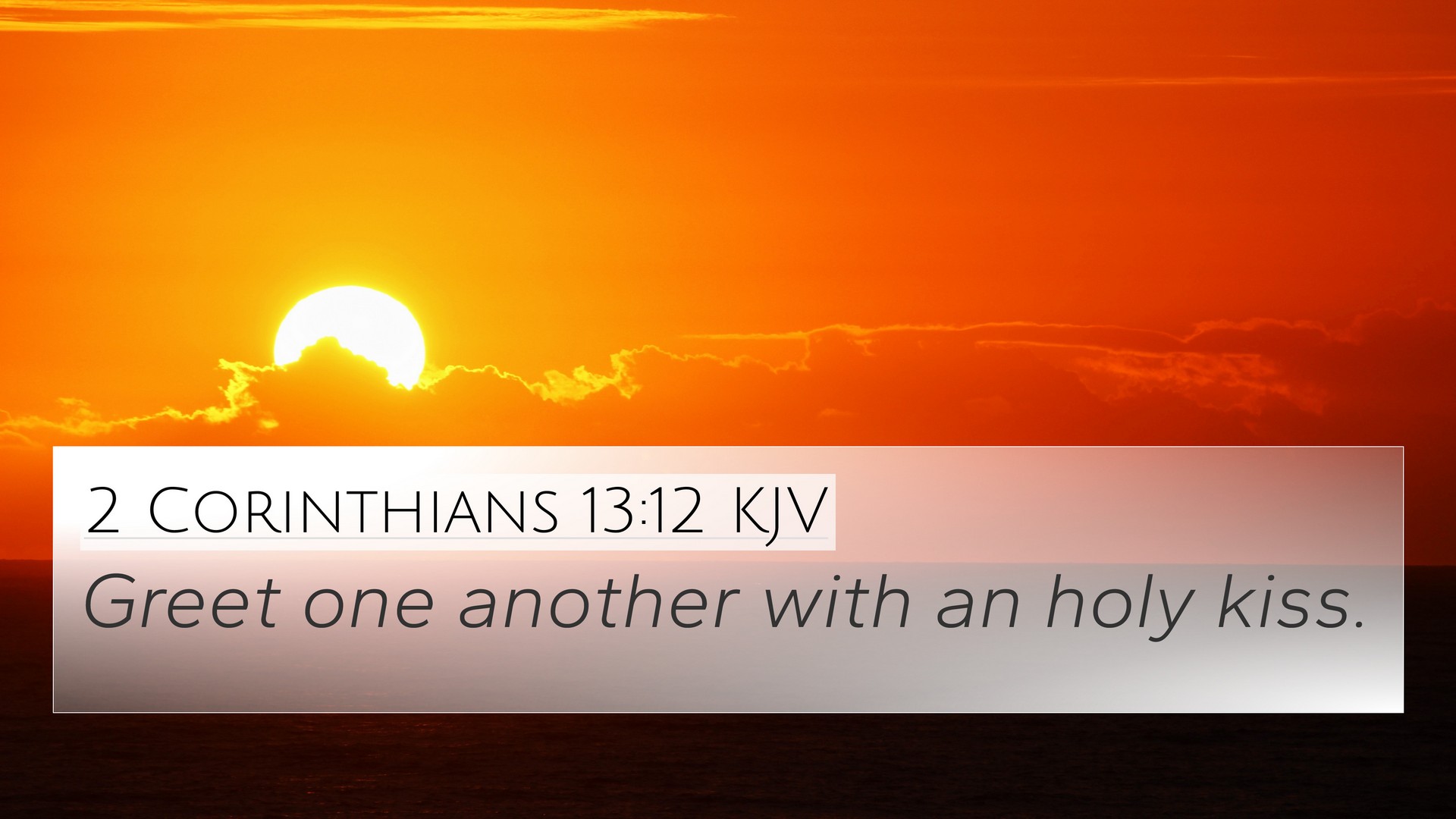 2 Corinthians 13:12 is a profound reminder of the relational dynamics within the Christian faith. The act of greeting with an holy kiss serves as a metaphor for the love and sanctity of fellowship, calling believers to actively express their affection and unity in Christ. By drawing connections between this verse and others throughout scripture, we recognize the enduring relevance of this instruction in building and nurturing the body of Christ.