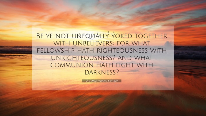 Below, you will find carefully selected verses that echo the themes and teachings related to 2 Corinthians 6:14 KJV. Click on any image to explore detailed analyses of related Bible verses and uncover deeper theological insights.