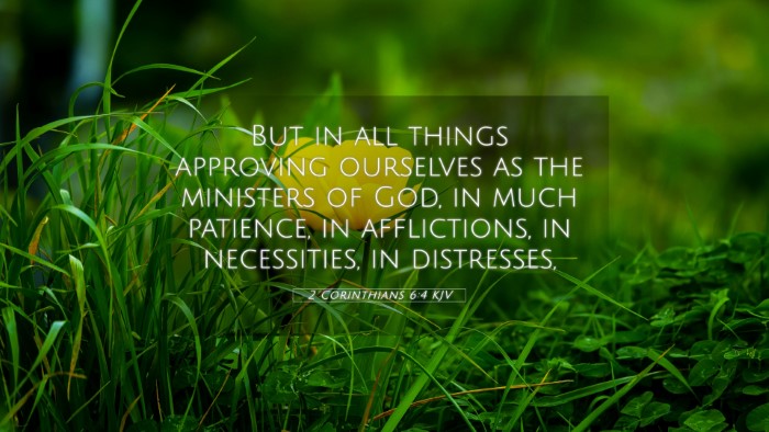 Below, you will find carefully selected verses that echo the themes and teachings related to 2 Corinthians 6:4 KJV. Click on any image to explore detailed analyses of related Bible verses and uncover deeper theological insights.