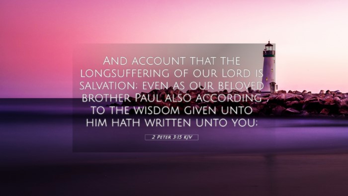 This verse, nestled within 2 Peter, relates closely to the themes of patience, salvation, and the acknowledgment of apostolic authority, particularly referencing Paul’s epistles. Peter emphasizes that the delay of the Lord's return is, in fact, an act of divine mercy, allowing more time for repentance and salvation.