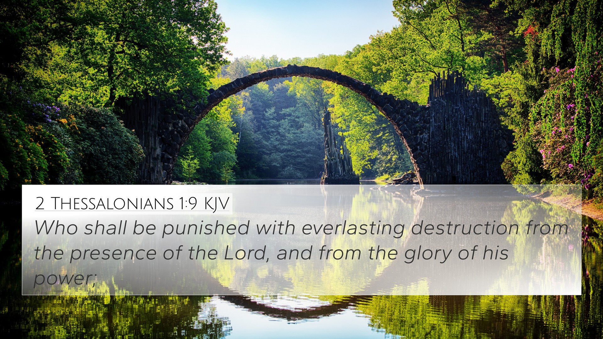 Verse: 2 Thessalonians 1:9 states, "Who shall be punished with everlasting destruction from the presence of the Lord, and from the glory of his power." This verse relates to the themes of divine judgment and the eternal consequences of sin.
