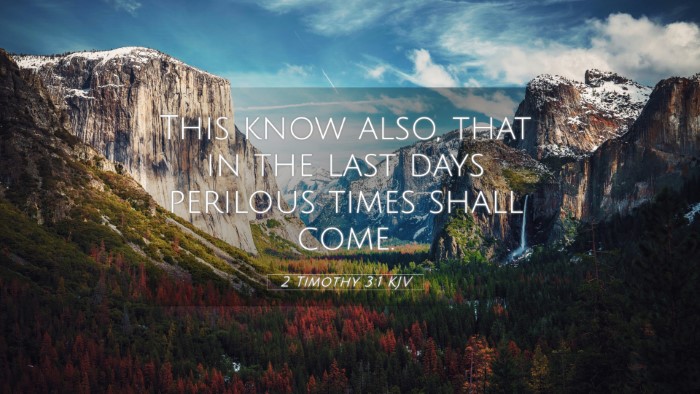 2 Timothy 3:1 serves as a pertinent reminder of the moral complexities facing the church and individual believers. Through scriptural cross-referencing and thematic analysis, the body of Christ can better prepare for challenges, remaining rooted in faith and truth. As believers reflect upon these insights, they can find hope and guidance amid tumultuous times.
