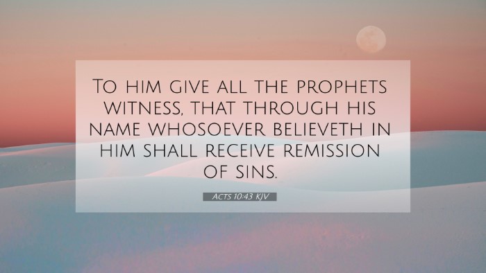 Below, you will find carefully selected verses that echo the themes and teachings related to Acts 10:43 KJV. Click on any image to explore detailed analyses of related Bible verses and uncover deeper theological insights.