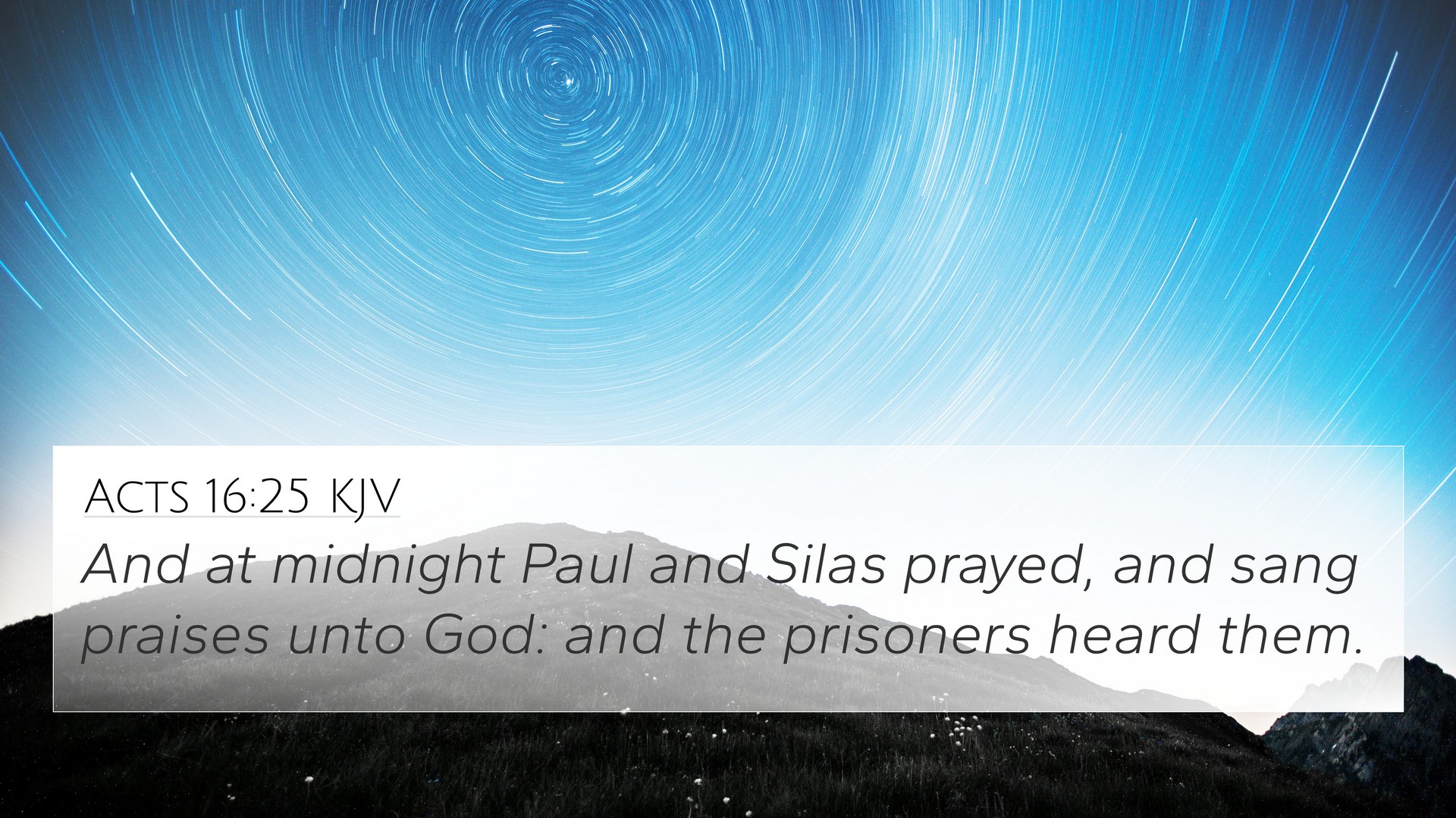 Acts 16:25 states: "But at midnight, Paul and Silas prayed, and sang praises unto God: and the prisoners heard them." This verse reveals profound truths about faith, worship, and the power of prayer during trials. The context of this verse is significant, as Paul and Silas were imprisoned unjustly for preaching the Gospel. Despite their dire circumstances, their response was one of prayer and praise.