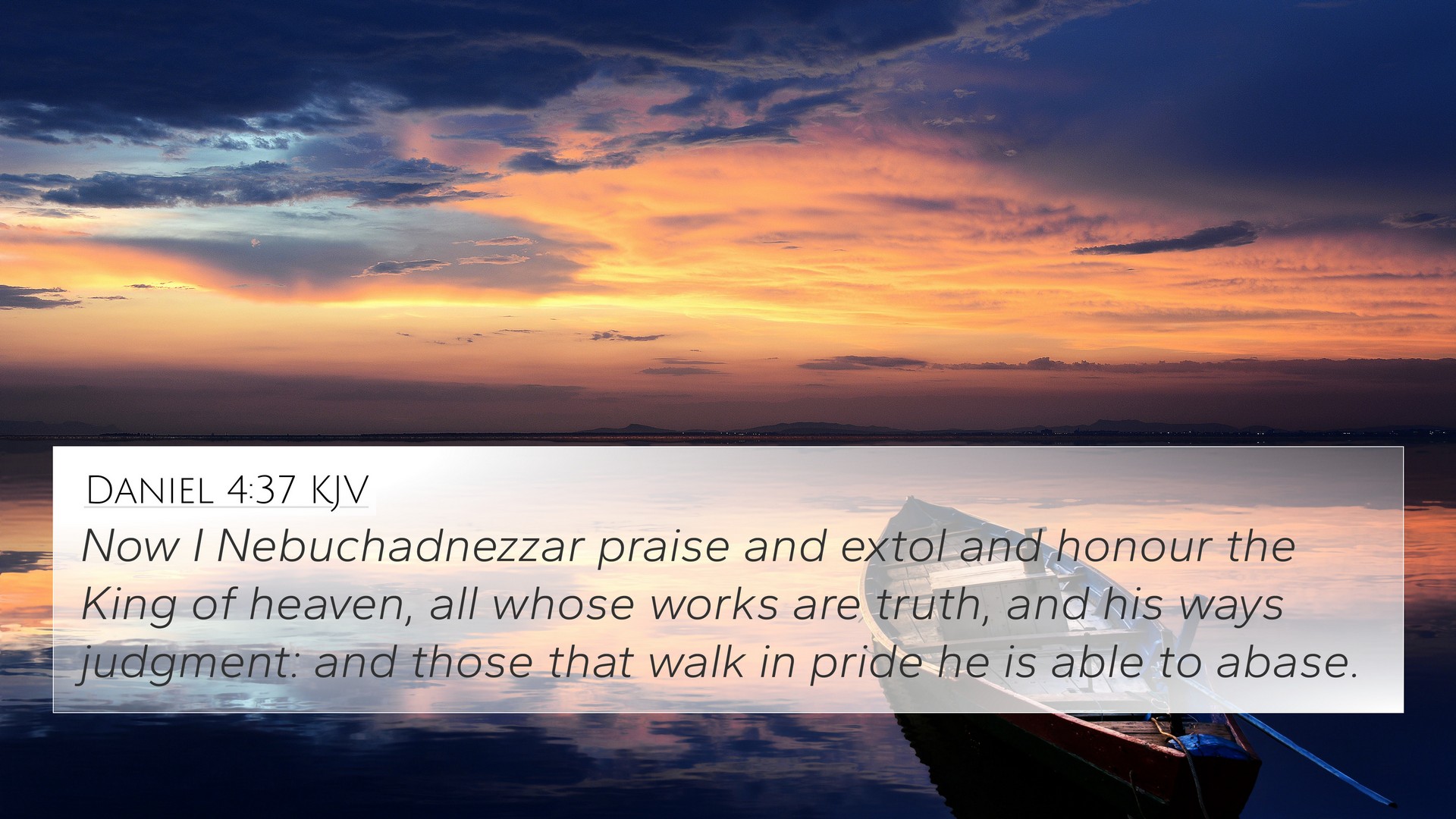 Below, you will find carefully selected verses that echo the themes and teachings related to Daniel 4:37 KJV. Click on any image to explore detailed analyses of related Bible verses and uncover deeper theological insights.