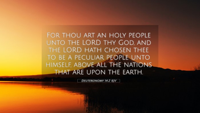 Below, you will find carefully selected verses that echo the themes and teachings related to Deuteronomy 14:2 KJV. Click on any image to explore detailed analyses of related Bible verses and uncover deeper theological insights.