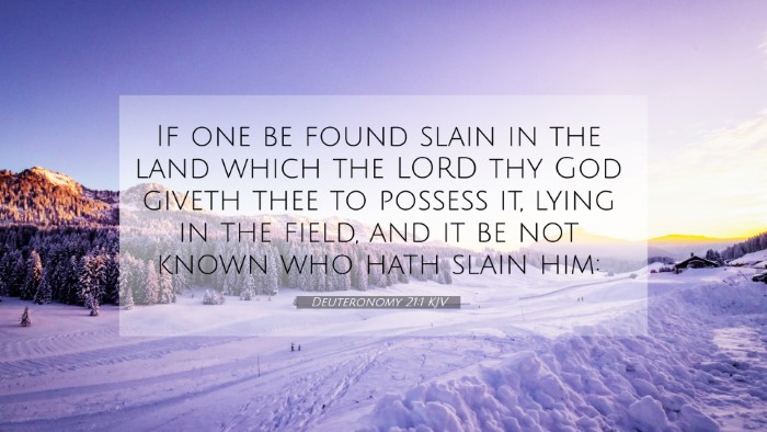 The verse Deuteronomy 21:1 addresses a specific situation regarding unsolved murders in Israel. It reads, "If one be found slain in the land which the Lord thy God giveth thee to possess it, lying in the field, and it be not known who hath slain him."