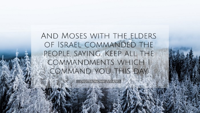 Deuteronomy 27:1 serves as a powerful reminder of the commitment required in the relationship between God and His people. By understanding this verse in its context and through the lens of cross-referencing, believers can appreciate the stability and continuity of God's commandments throughout Scripture.