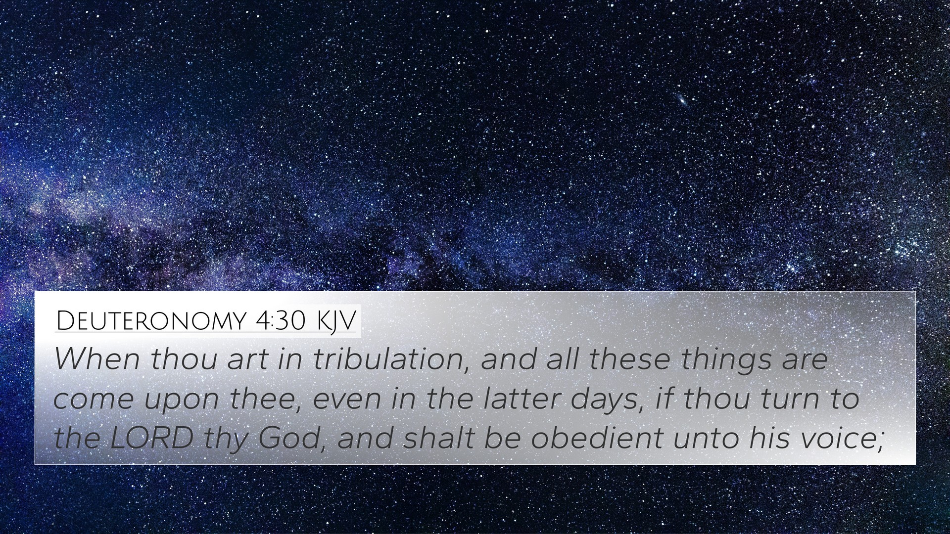 Below, you will find carefully selected verses that echo the themes and teachings related to Deuteronomy 4:30 KJV. Click on any image to explore detailed analyses of related Bible verses and uncover deeper theological insights.