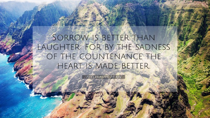 Verse Context: Ecclesiastes 7:3 states, "Sorrow is better than laughter: for by the sadness of the countenance the heart is made better." This verse invites deep reflection on the nature of human emotion and the role of sorrow in our lives.