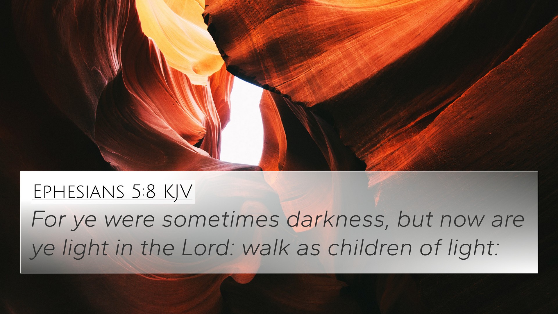The verse contrasts the state of believers before and after their conversion. Initially described as "darkness," this term metaphorically represents ignorance, sin, and separation from God. In contrast, being "light in the Lord" signifies enlightenment, holiness, and a relationship with God. The latter part of the verse urges believers to "walk as children of light," emphasizing a lifestyle that reflects one’s new identity in Christ.