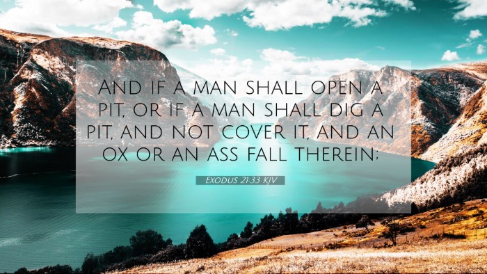 Matthew Henry emphasizes that this law reflects God's concern for the safety of animals, asserting that even beasts deserve protection and humane treatment. He interprets the pit as a metaphor for the dangers of neglecting moral duties.