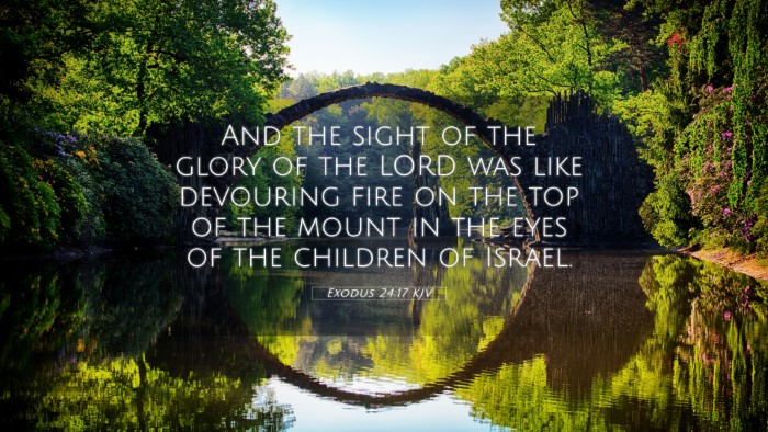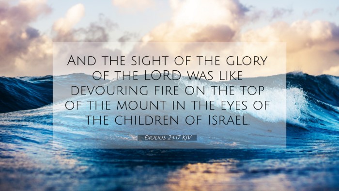 Exodus 24:17 serves as a profound reminder of the reverence due to God’s glory—a theme echoed throughout the Bible. Understanding this verse through the insights of various commentaries allows one to appreciate the narrative depth and the relational dynamics at play between God and man. The connections formed inline with the broader biblical themes further enrich our understanding and encourage deeper study through tools like Bible concordance and Bible cross-reference systems.