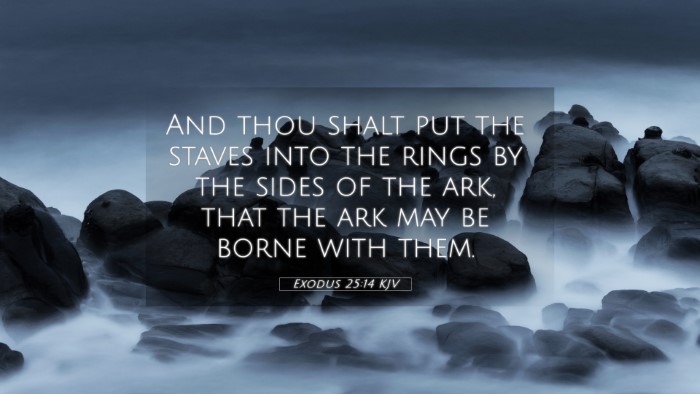The theme of God's presence and mobility expressed in Exodus 25:14 resonates throughout the Bible, establishing a framework for understanding God’s relationship with His people.