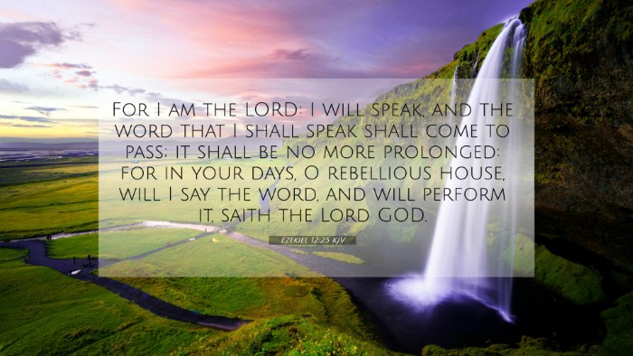 Ezekiel 12:25 serves as a powerful reminder of the certainty of God's word against the backdrop of human rebellion. As believers engage in scriptural cross-referencing, they will uncover rich insights and understand the continuity of God's promises throughout the biblical text. By employing tools for Bible cross-referencing and exploring connections between verses, one can deepen their understanding of God's unchangeable nature and the fulfillment of His plans across both the Old and New Testaments.