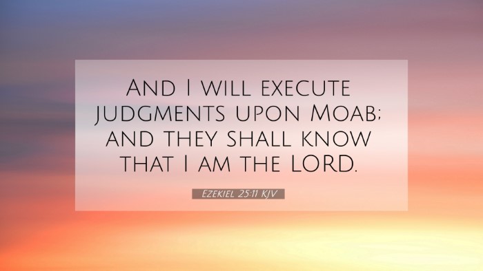 Ezekiel 25:11 states: "And I will execute judgments upon Moab; and they shall know that I am the Lord." This verse is significant as it emphasizes God's sovereignty and His commitment to justice against the nations surrounding Israel, particularly Moab.