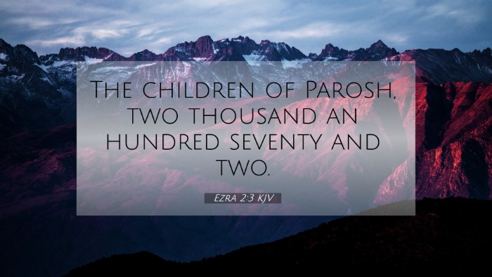 In analyzing Ezra 2:3, we can gather significant insights from several public domain commentaries, including those of Matthew Henry, Albert Barnes, and Adam Clarke.