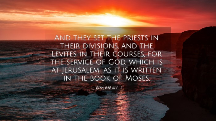 The significance of Ezra 6:18 can be drawn from various public domain commentaries: