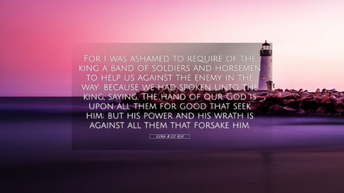 Below, you will find carefully selected verses that echo the themes and teachings related to Ezra 8:22 KJV. Click on any image to explore detailed analyses of related Bible verses and uncover deeper theological insights.