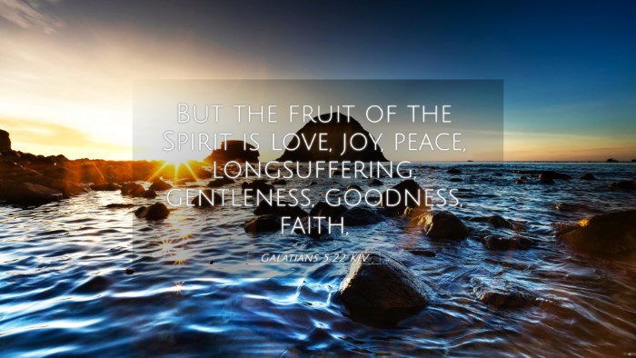 Below, you will find carefully selected verses that echo the themes and teachings related to Galatians 5:22 KJV. Click on any image to explore detailed analyses of related Bible verses and uncover deeper theological insights.