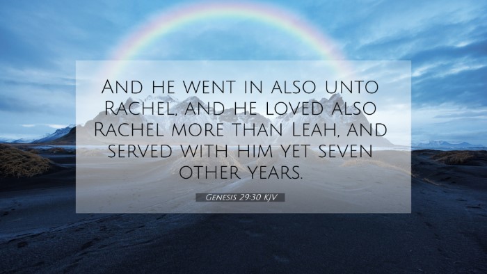 The themes in Genesis 29:30 can be connected to various other verses in the Bible, showcasing the multifaceted nature of love, loyalty, and family dynamics. Below are notable Bible verse cross-references that enhance the understanding of this verse: