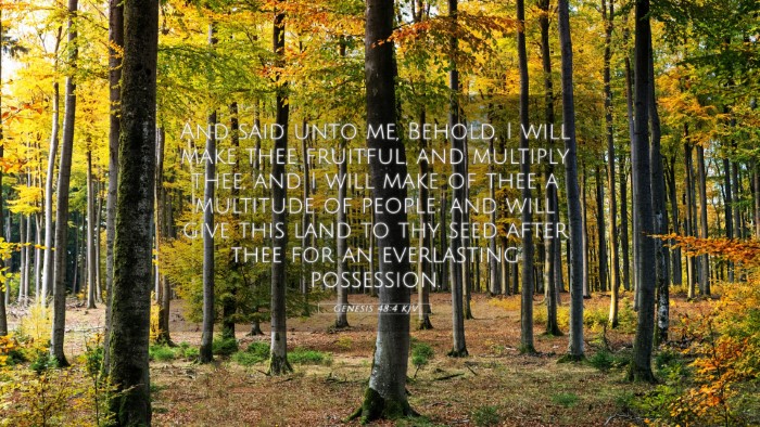 Below, you will find carefully selected verses that echo the themes and teachings related to Genesis 48:4 KJV. Click on any image to explore detailed analyses of related Bible verses and uncover deeper theological insights.