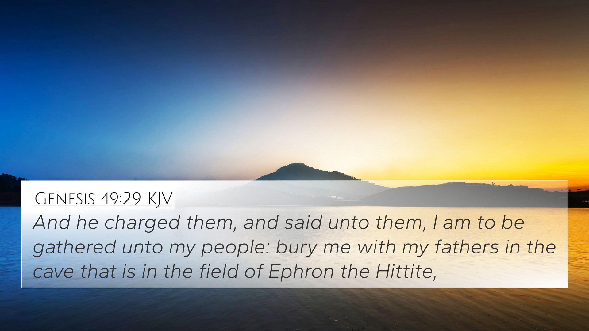 Genesis 49:29 states, "Then he gave them these instructions: 'I am about to be gathered to my people. Bury me with my ancestors in the cave in the field of Ephron the Hittite.' This verse concludes Jacob's blessings upon his sons as he prepares for his impending death. It serves as a poignant moment filled with emotional significance and practical instructions regarding his burial.