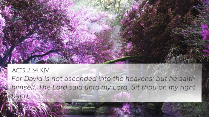 - Acts 2:34-35 - "For David is not ascended into the heavens: but he saith himself, The Lord said unto my Lord, Sit thou on my right hand..." Peter quotes Psalms to affirm the resurrection and exaltation of Christ.