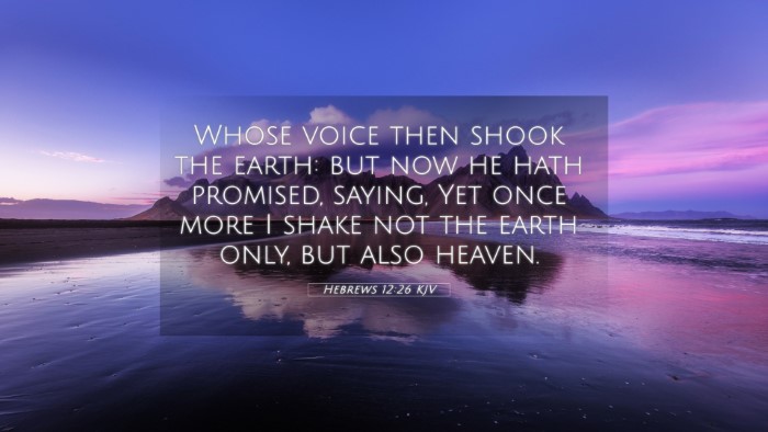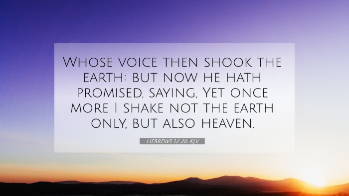Hebrews 12:26 states: "At that time his voice shook the earth, but now he has promised, 'Once more I will shake not only the earth but also the heavens.' This verse is rich in theological significance, emphasizing God's authority over creation and the implications of His promises.