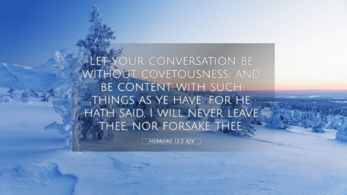 Below, you will find carefully selected verses that echo the themes and teachings related to Hebrews 13:5 KJV. Click on any image to explore detailed analyses of related Bible verses and uncover deeper theological insights.
