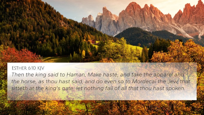 Then the king said to Haman, Make haste, and take the apparel and the horse, as thou hast said, and do even so to Mordecai the Jew, that sitteth at the king's gate: let nothing fail of all that thou hast spoken.