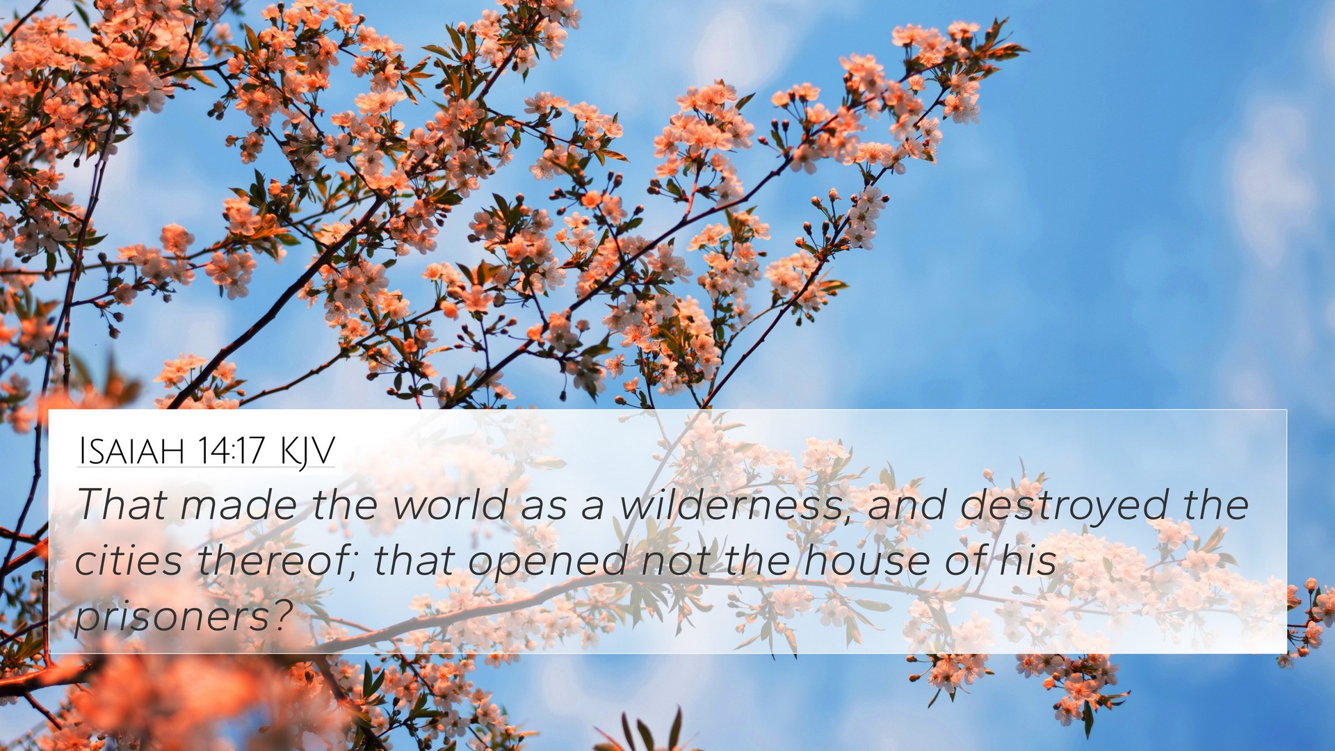 Verse (Isaiah 14:17): "That made the world as a wilderness, and destroyed the cities thereof; that opened not the house of his prisoners."