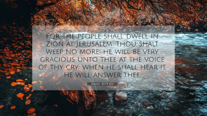 Below, you will find carefully selected verses that echo the themes and teachings related to Isaiah 30:19 KJV. Click on any image to explore detailed analyses of related Bible verses and uncover deeper theological insights.