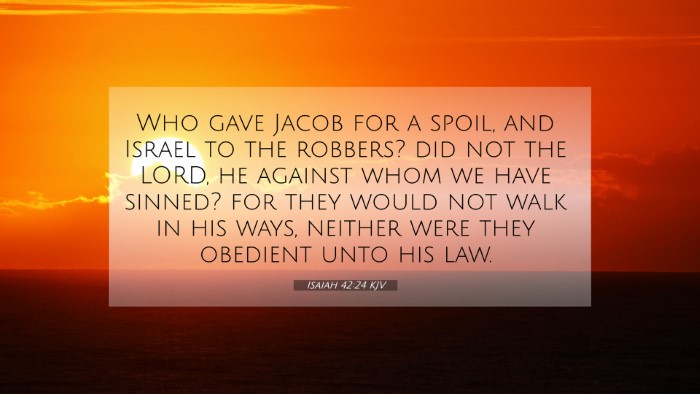 Below, you will find carefully selected verses that echo the themes and teachings related to Isaiah 42:24 KJV. Click on any image to explore detailed analyses of related Bible verses and uncover deeper theological insights.