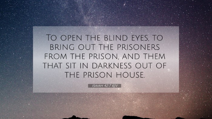 Below, you will find carefully selected verses that echo the themes and teachings related to Isaiah 42:7 KJV. Click on any image to explore detailed analyses of related Bible verses and uncover deeper theological insights.