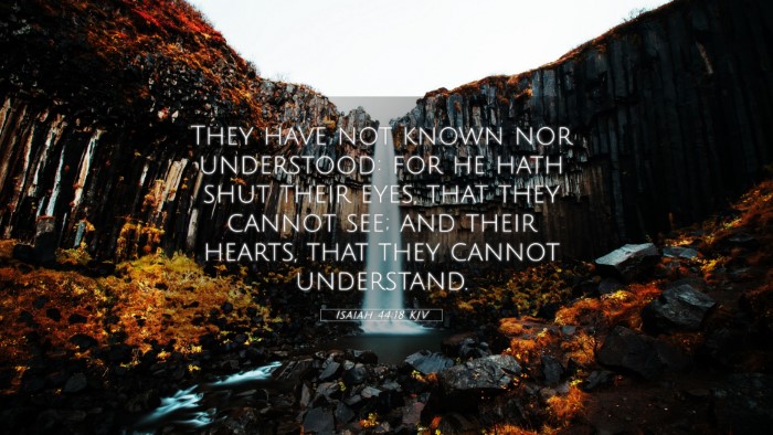 Below, you will find carefully selected verses that echo the themes and teachings related to Isaiah 44:18 KJV. Click on any image to explore detailed analyses of related Bible verses and uncover deeper theological insights.