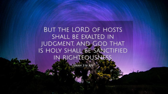 Below, you will find carefully selected verses that echo the themes and teachings related to Isaiah 5:16 KJV. Click on any image to explore detailed analyses of related Bible verses and uncover deeper theological insights.