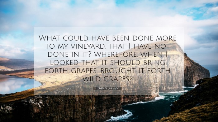 Isaiah 5:4 invites readers to reflect on the gravity of failing to live up to God's expectations. It serves as a reminder of the importance of producing good fruit in one’s life, correlating closely with the overarching narrative of accountability seen throughout the Bible.